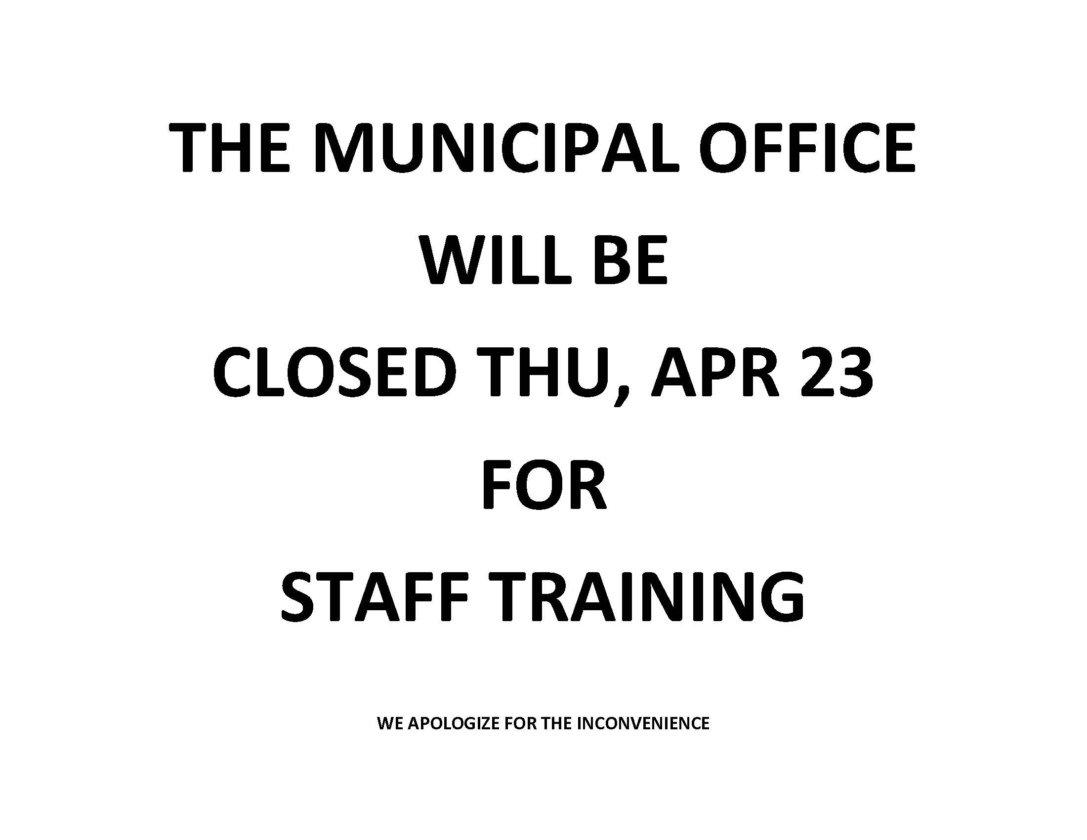 Office will be closed Thu, Apr 23 for Staff Training
